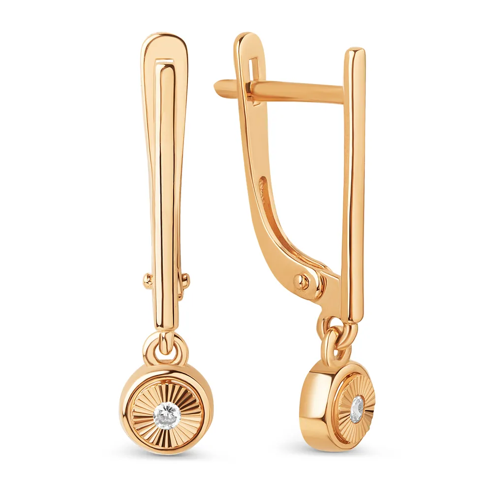 Серьги из красного золота с фианитами