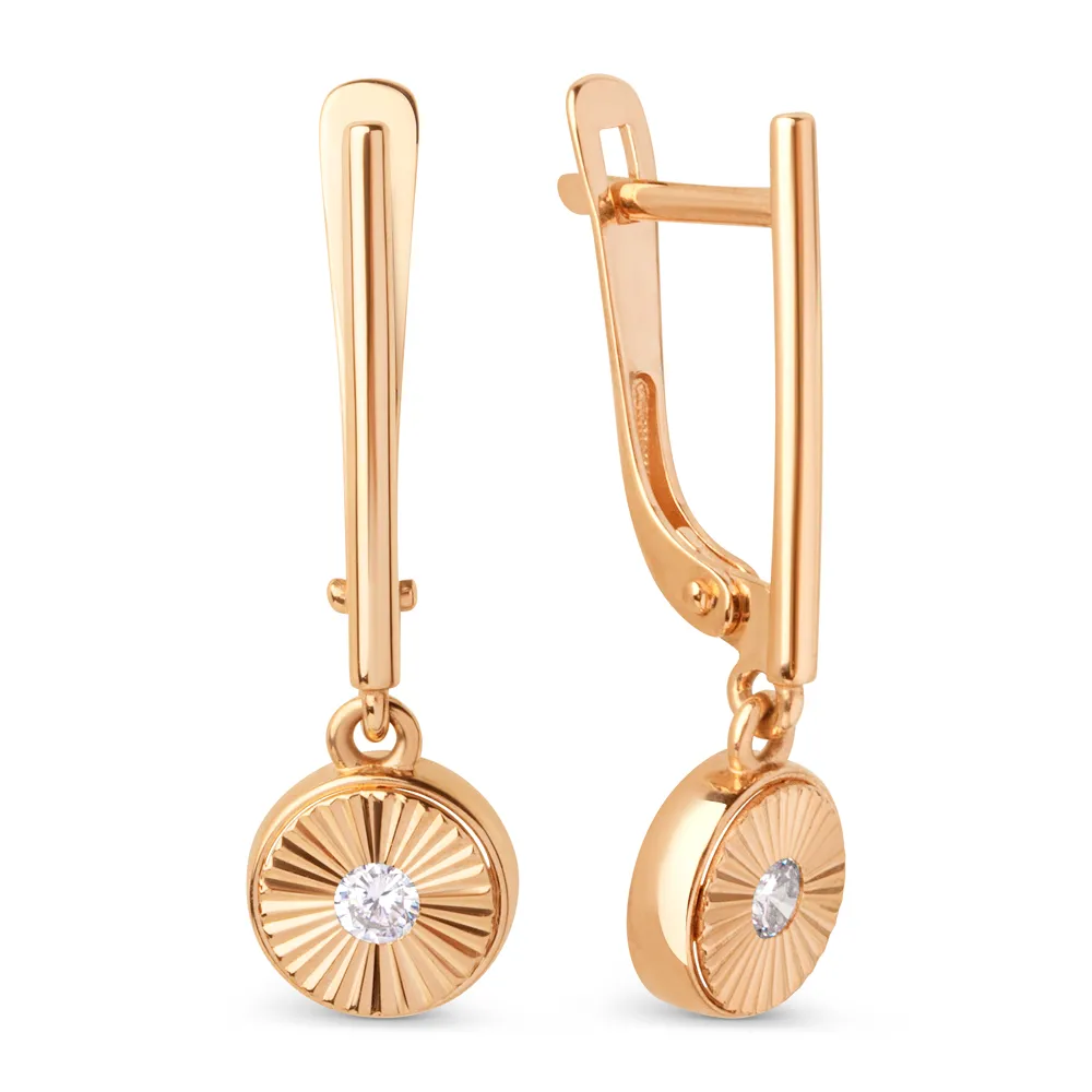 Серьги из красного золота с фианитами