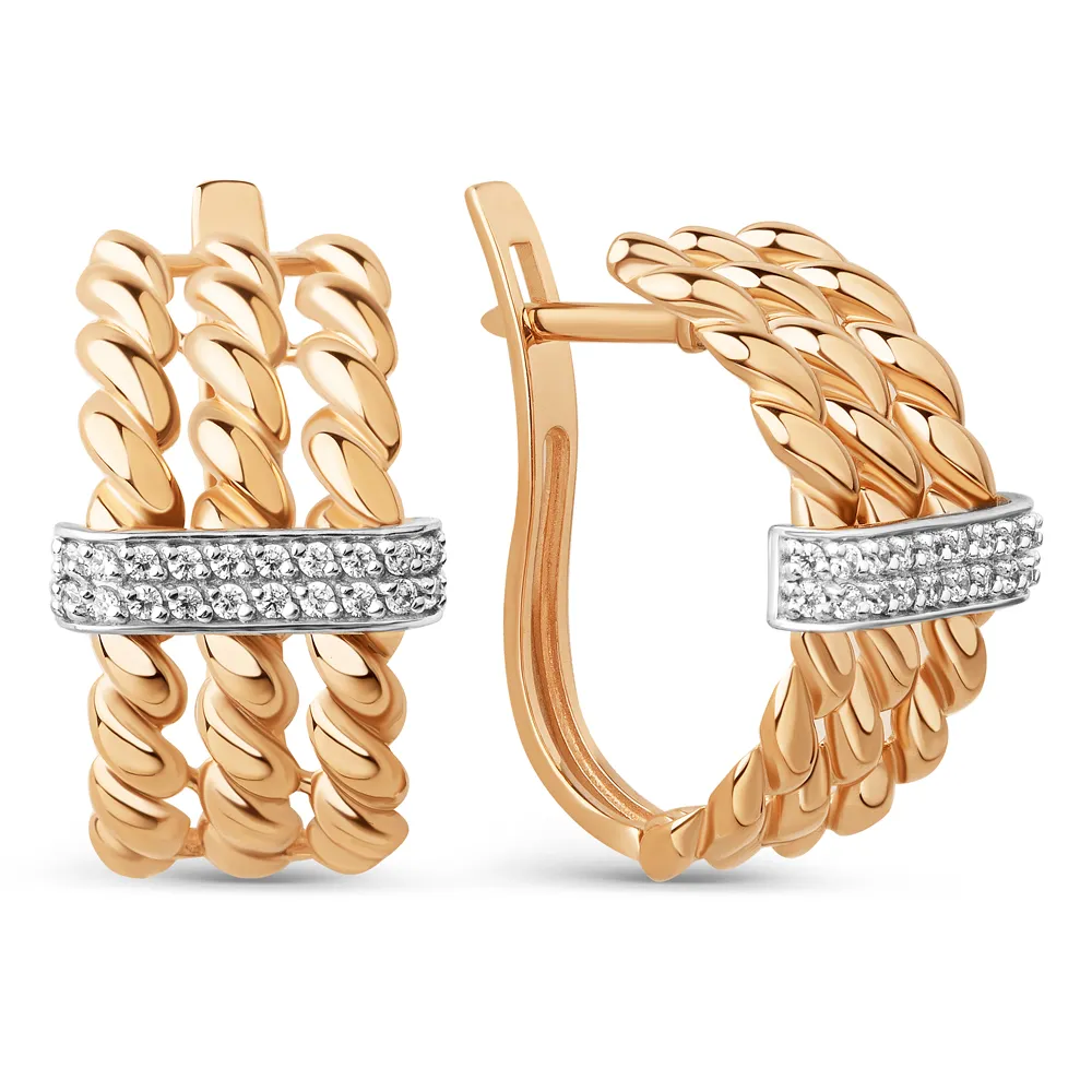 Серьги из красного золота с фианитами
