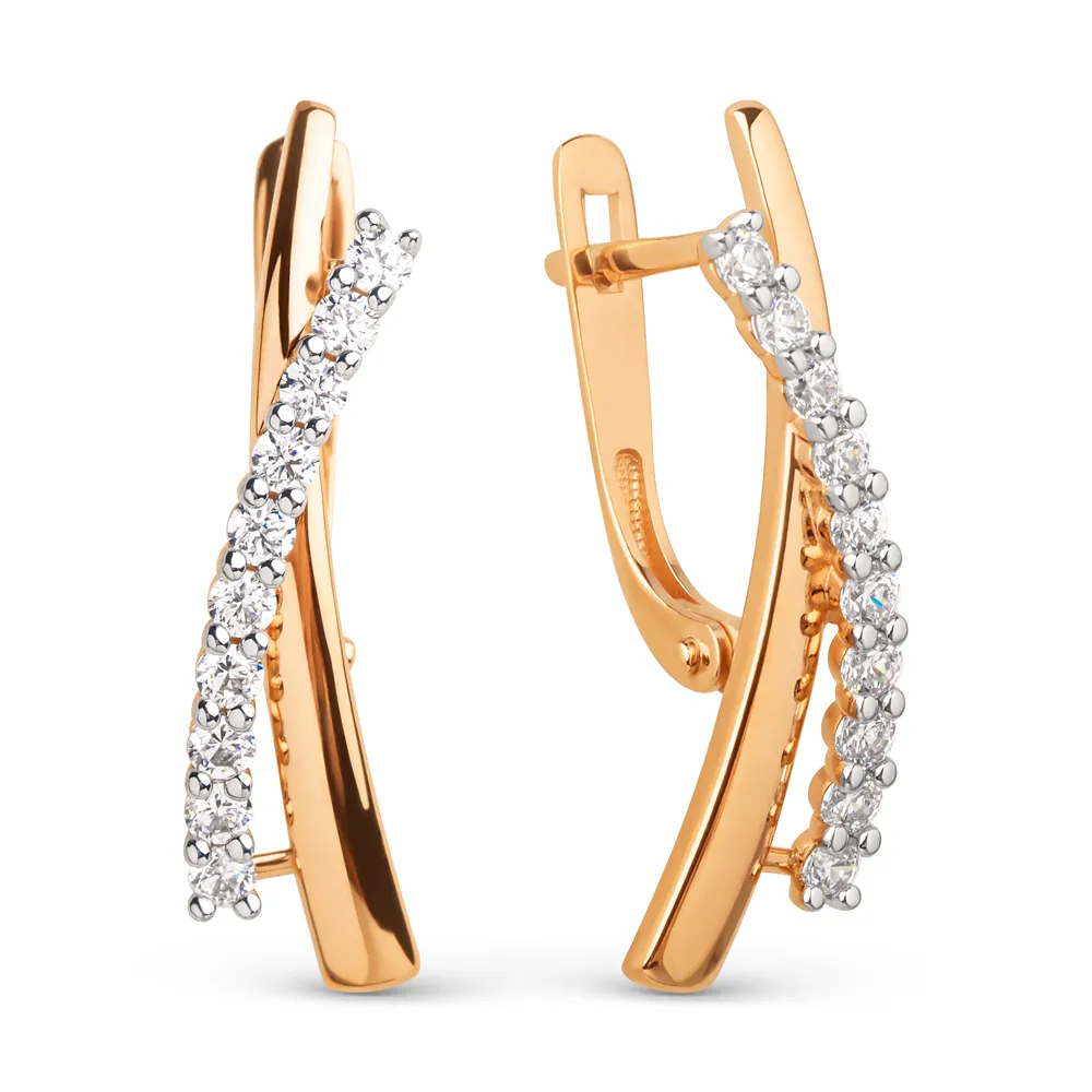 Серьги из красного золота с фианитами