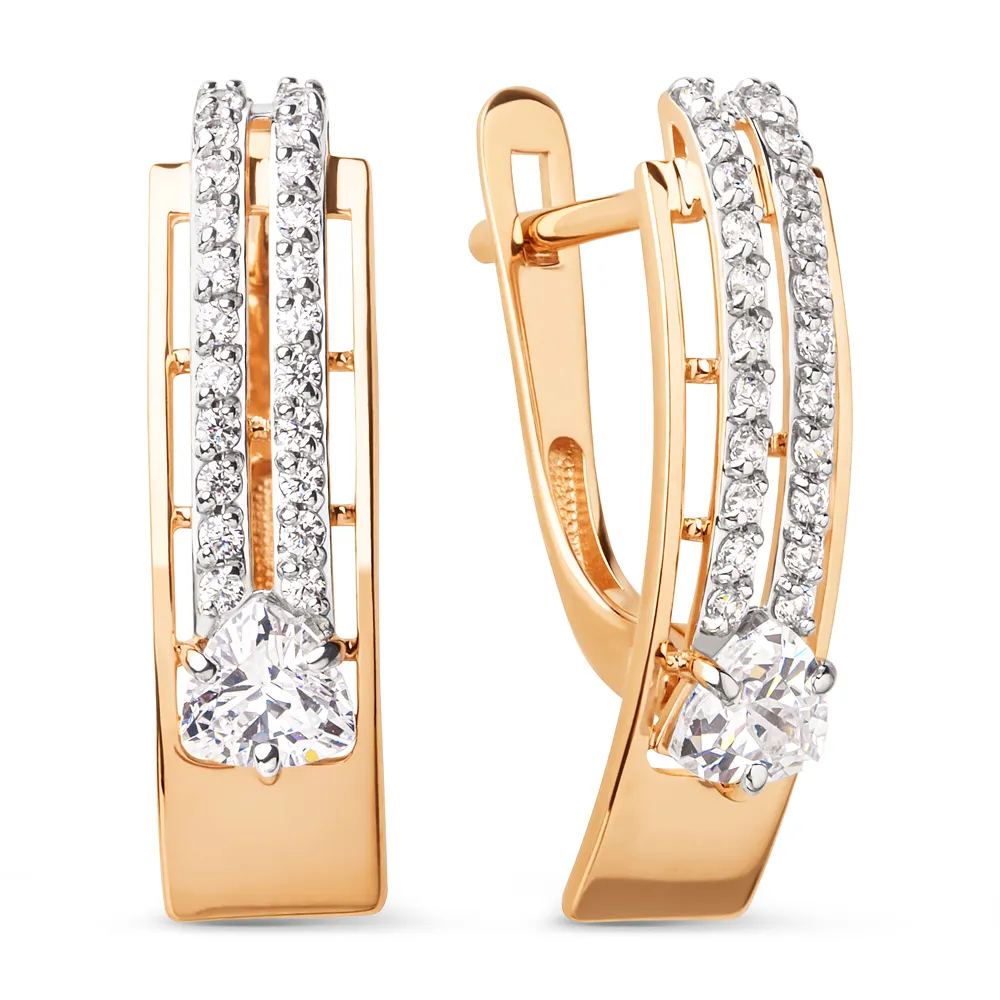 Серьги из красного золота с фианитами