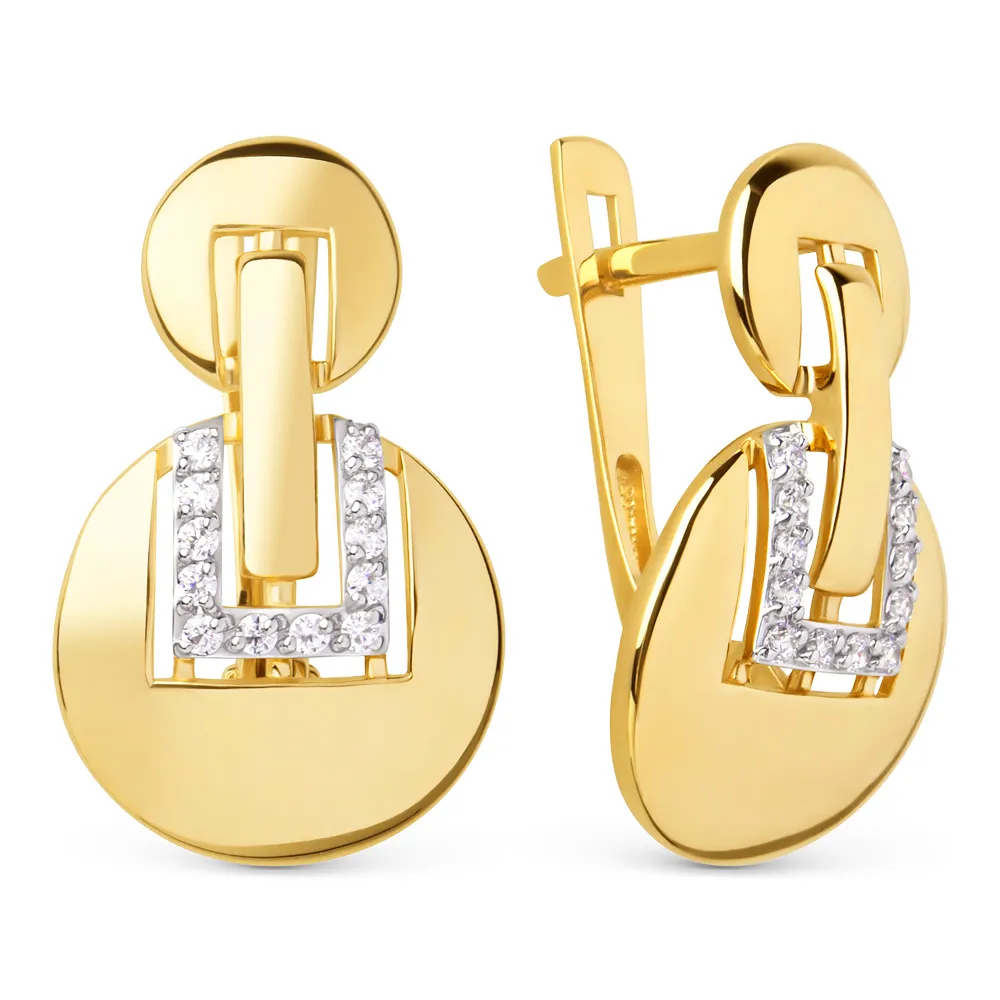 Серьги из желтого золота с фианитами