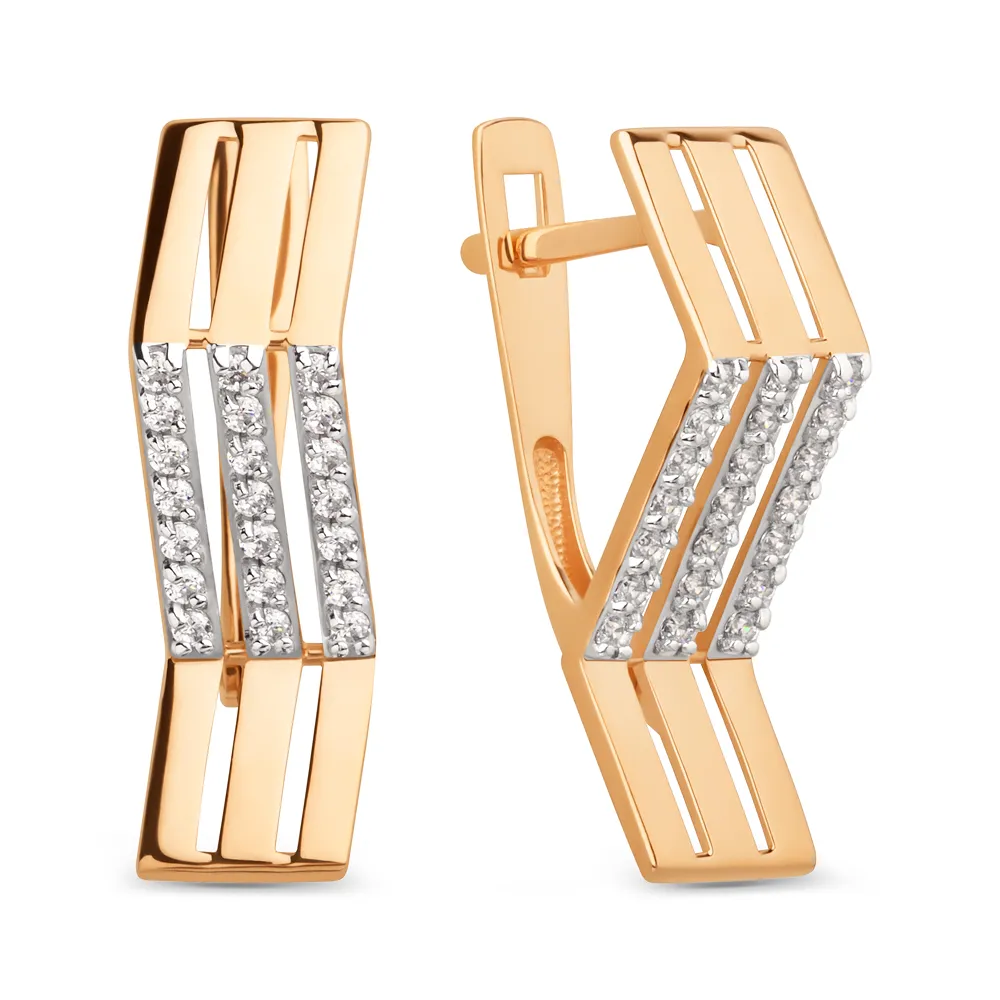 Серьги из красного золота с фианитами