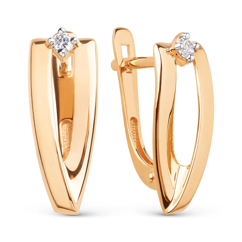 Серьги пусеты из красного золота с фианитами 024842-1102