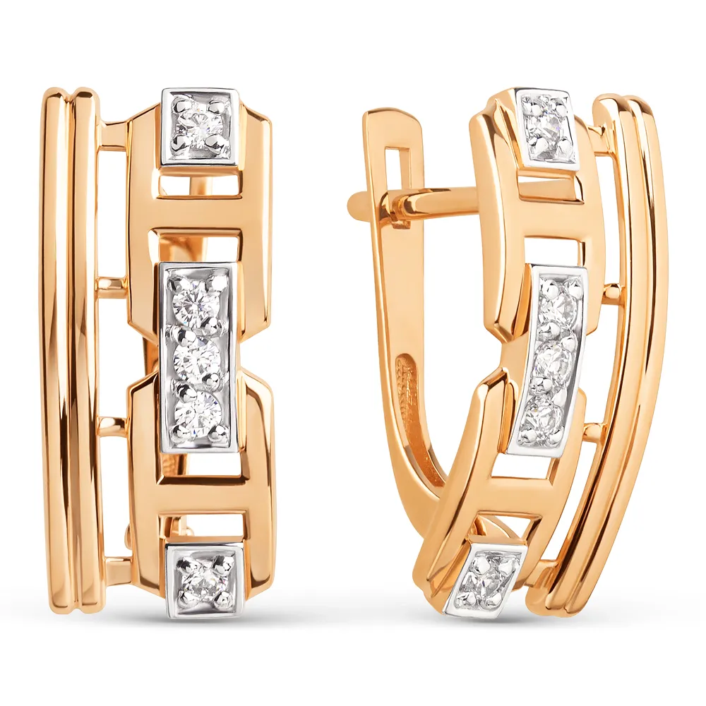 Серьги из красного золота с фианитами