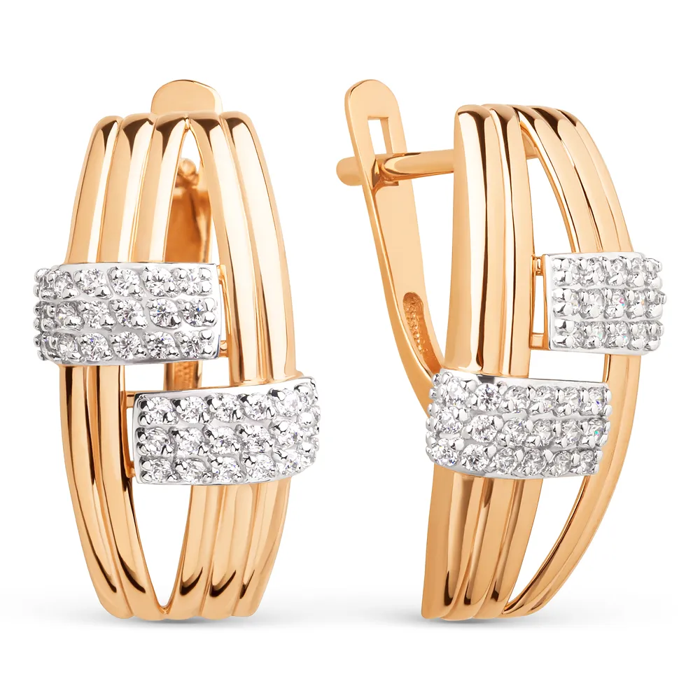 Серьги из красного золота с фианитами