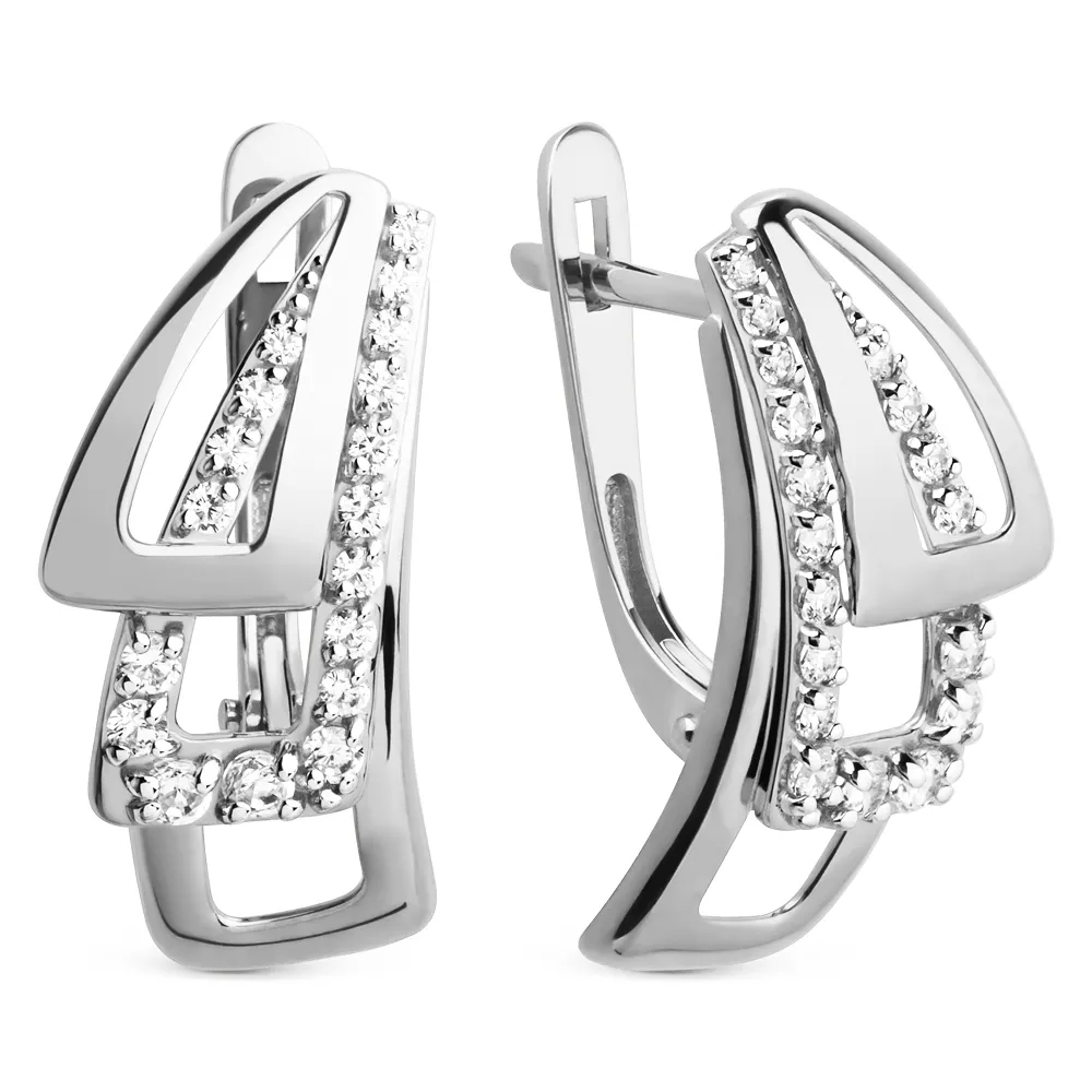 Серьги из белого золота с фианитами