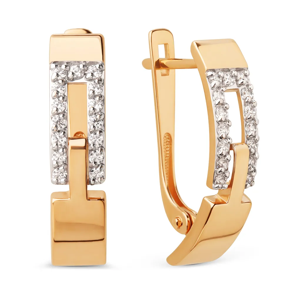 Серьги из красного золота с фианитами