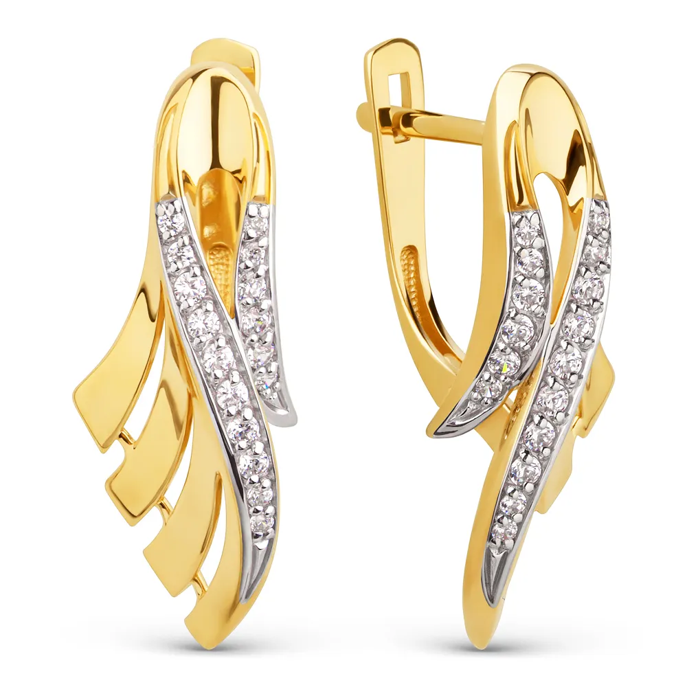 Серьги из желтого золота с фианитами