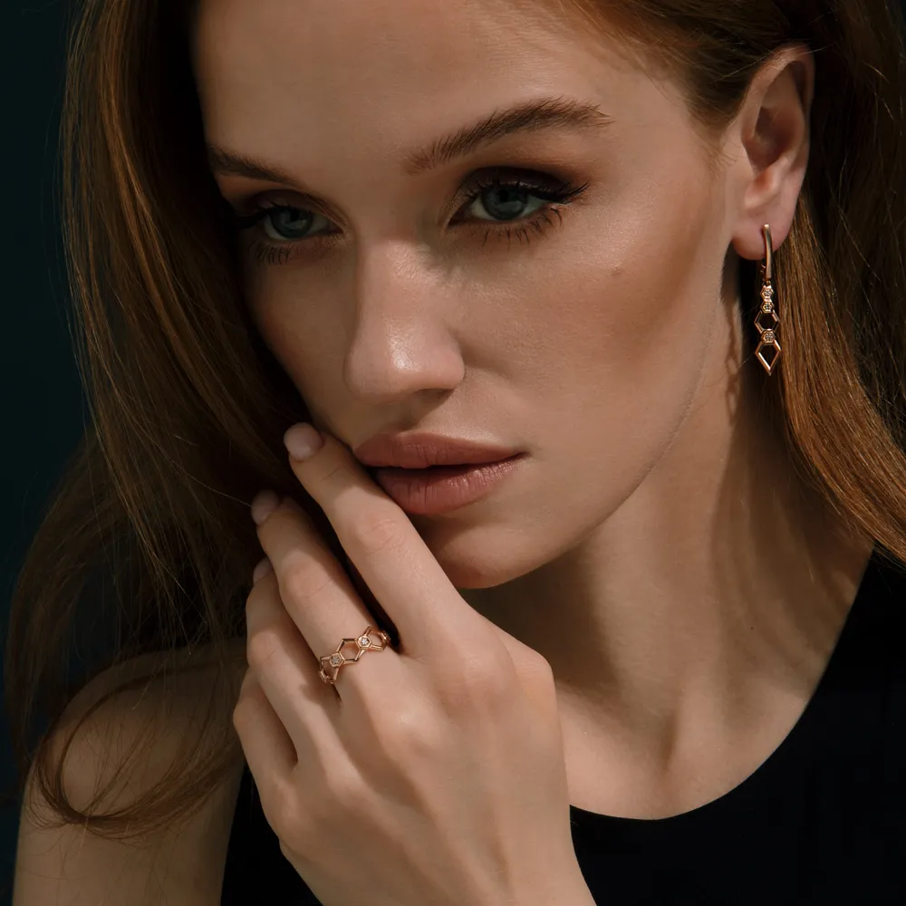 Кольцо из красного золота с фианитами