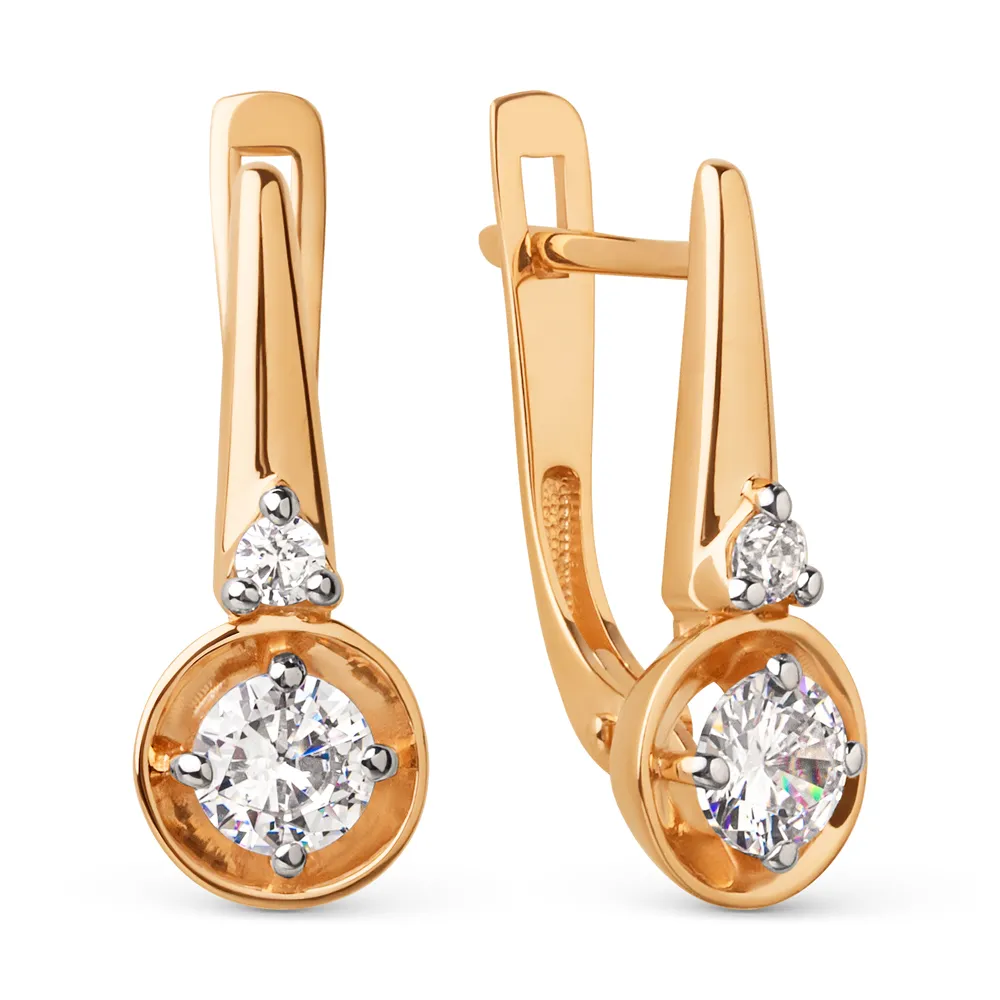 Серьги из красного золота с фианитами