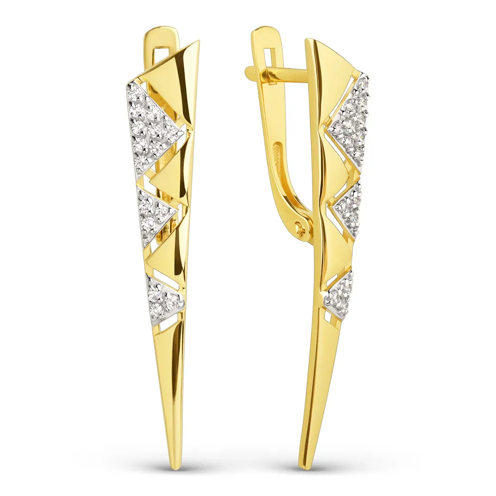 Серьги из желтого золота с фианитами