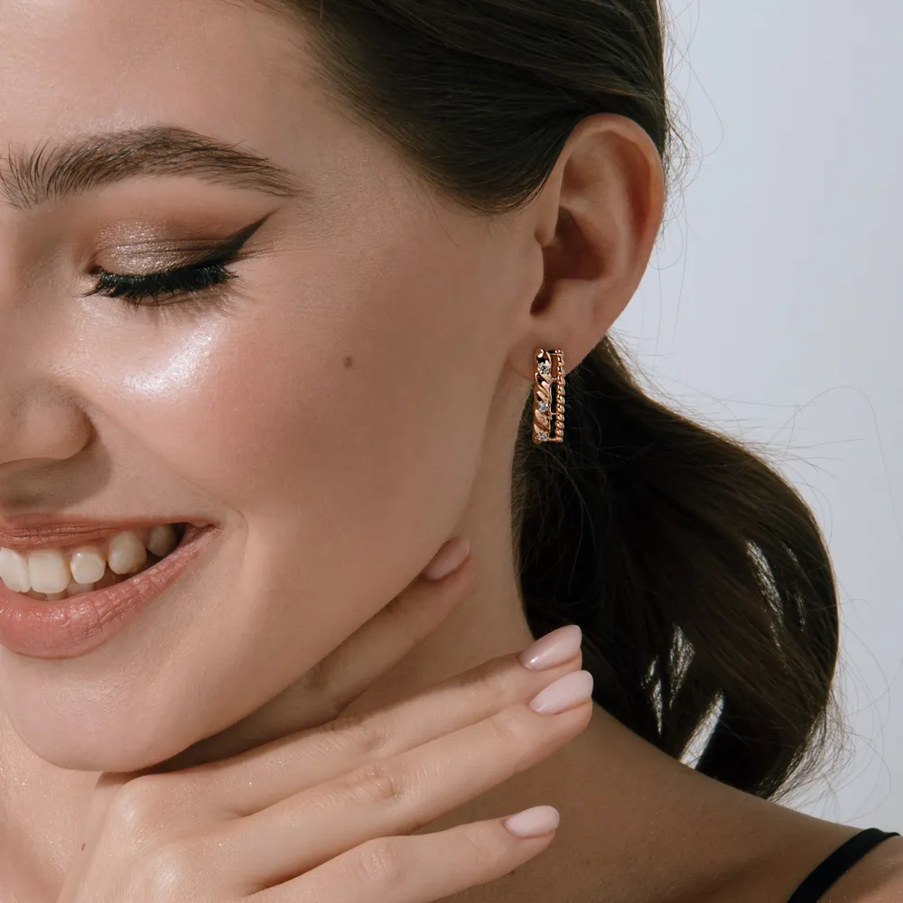 Серьги из красного золота с фианитами