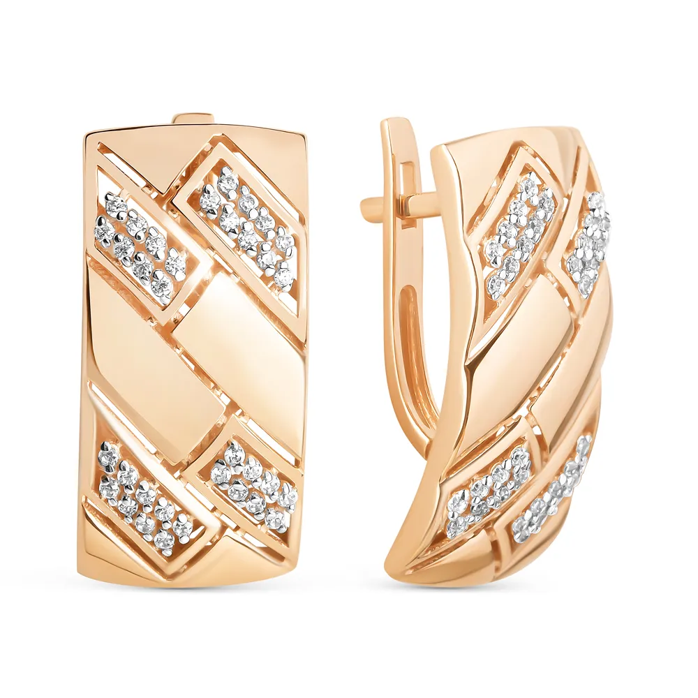 Серьги пусеты из красного золота с фианитами 024842-1102