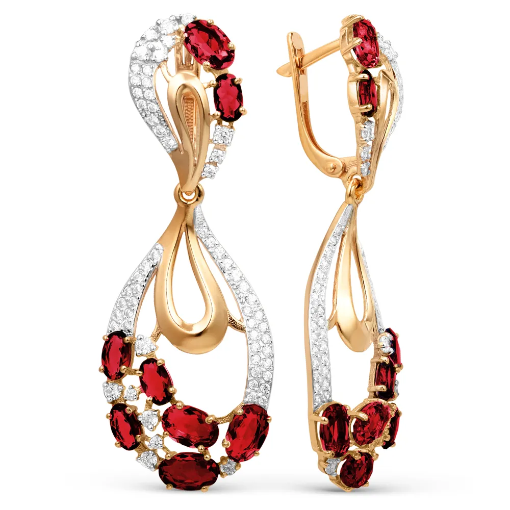 Серьги из красного золота с гранатами