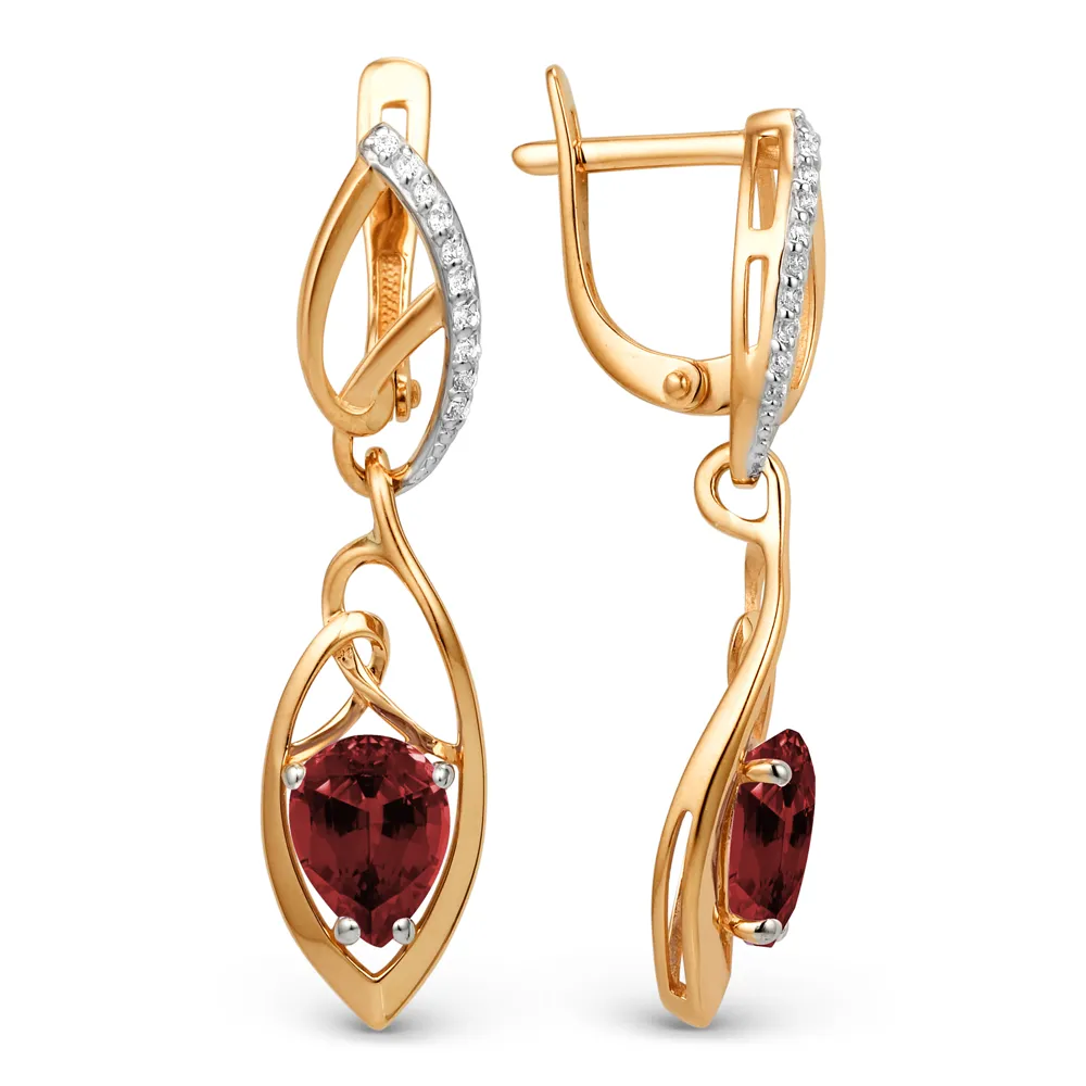 Серьги из красного золота с гранатами