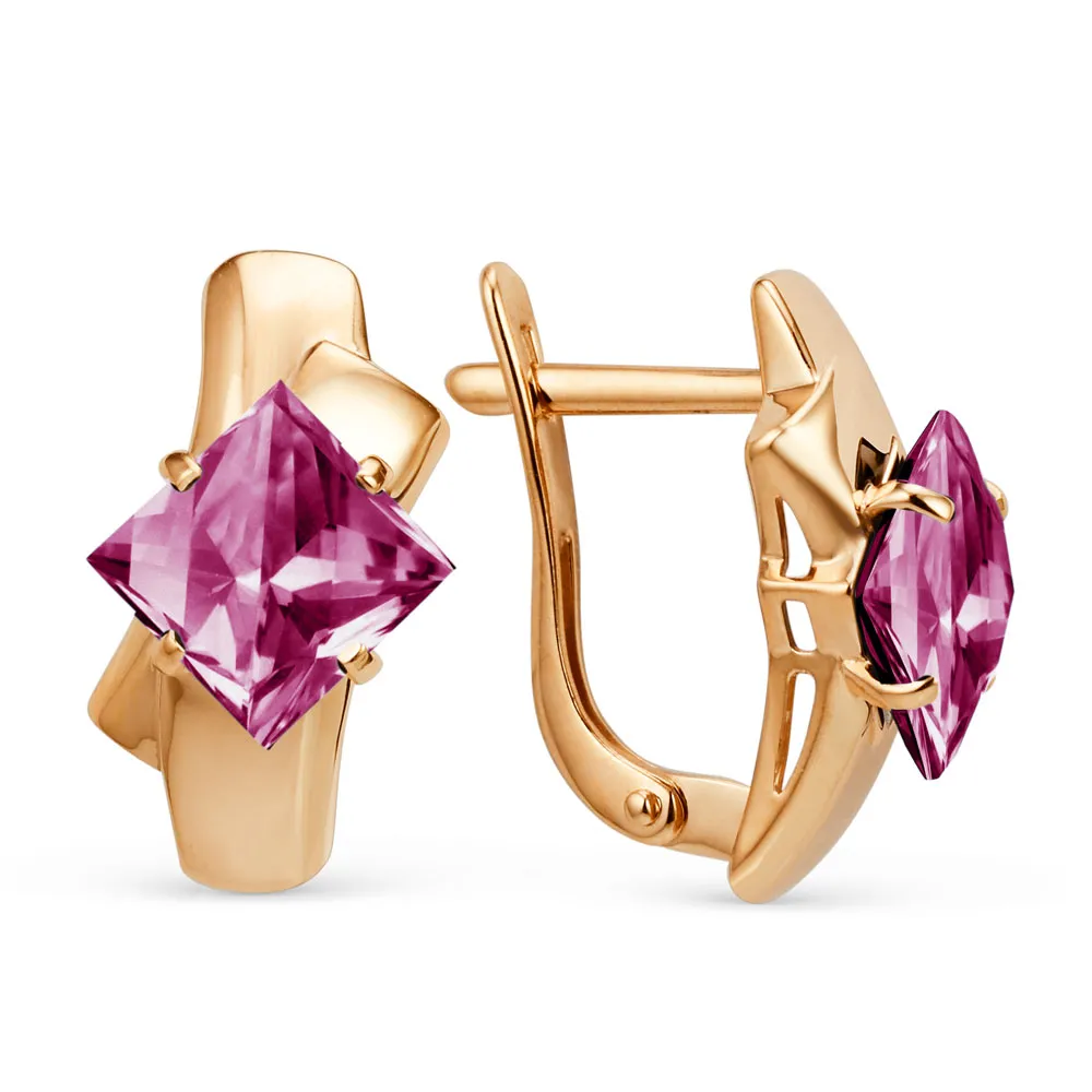 Серьги из красного золота с фианитами