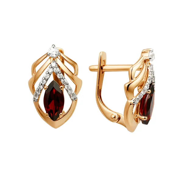 Серьги из красного золота с гранатами