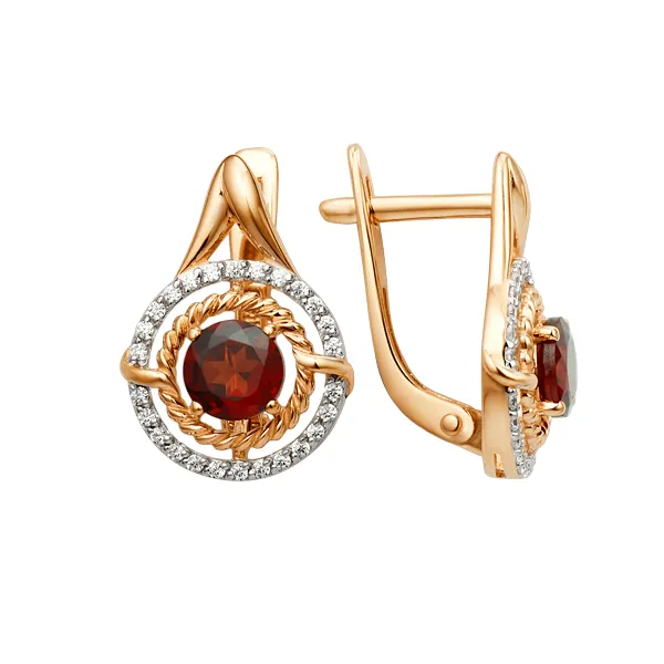 Серьги из красного золота с гранатами