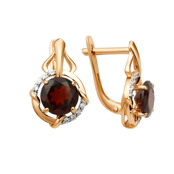 Серьги из красного золота с гранатами