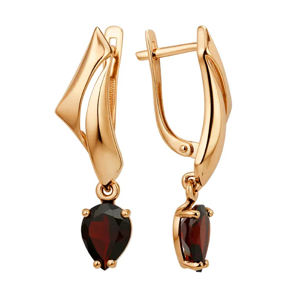 Серьги из красного золота с гранатами