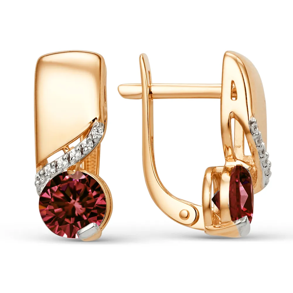 Серьги из красного золота с гранатами