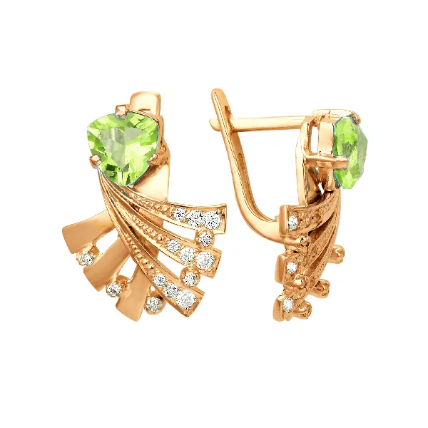 Серьги из красного золота с хризолитами