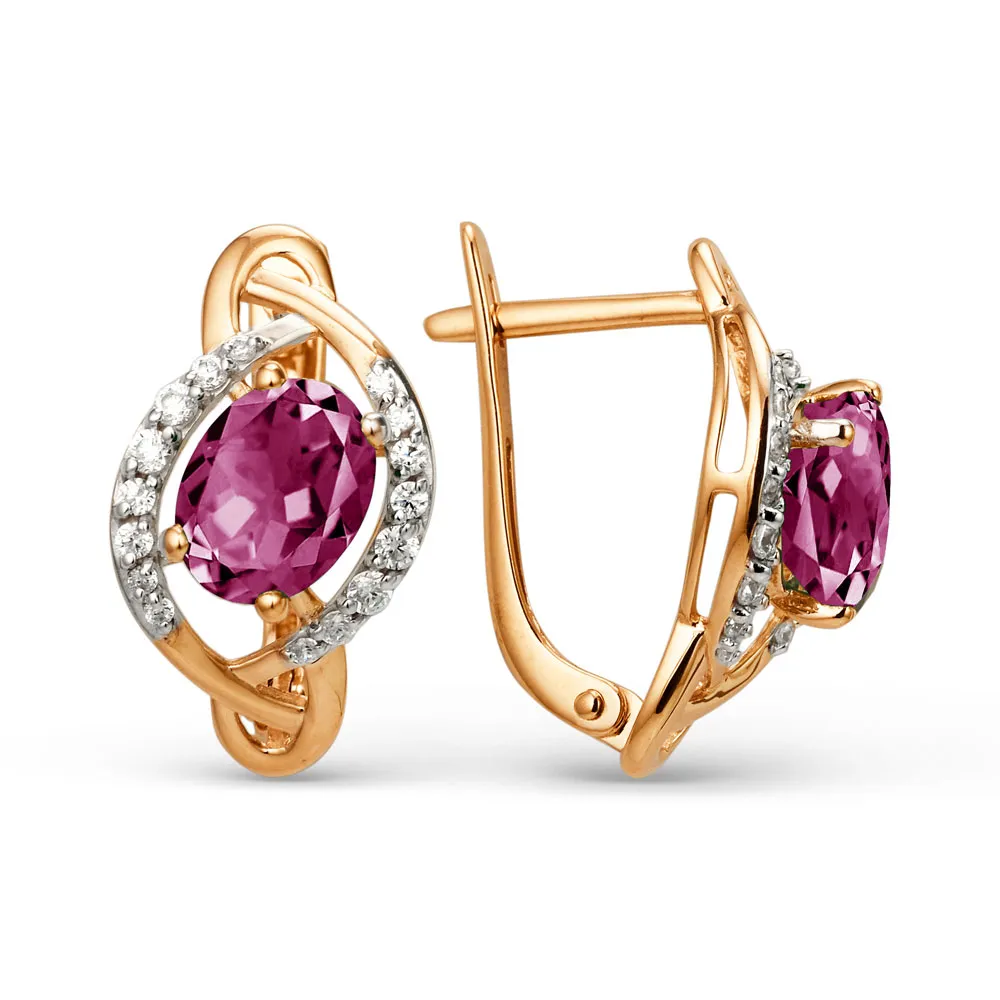 Серьги пусеты из красного золота с фианитами 024842-1102
