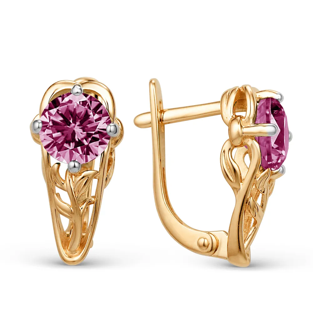 Серьги из красного золота с фианитами