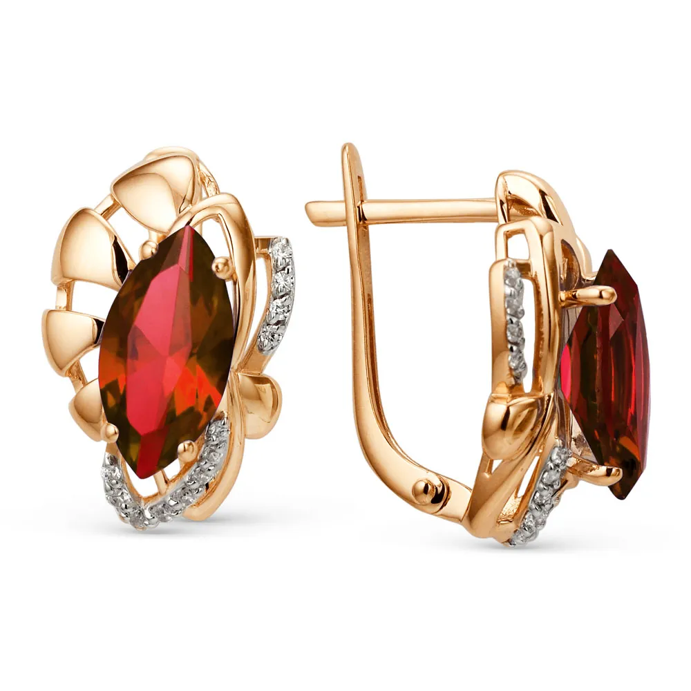 Серьги пусеты из красного золота с фианитами 024842-1102