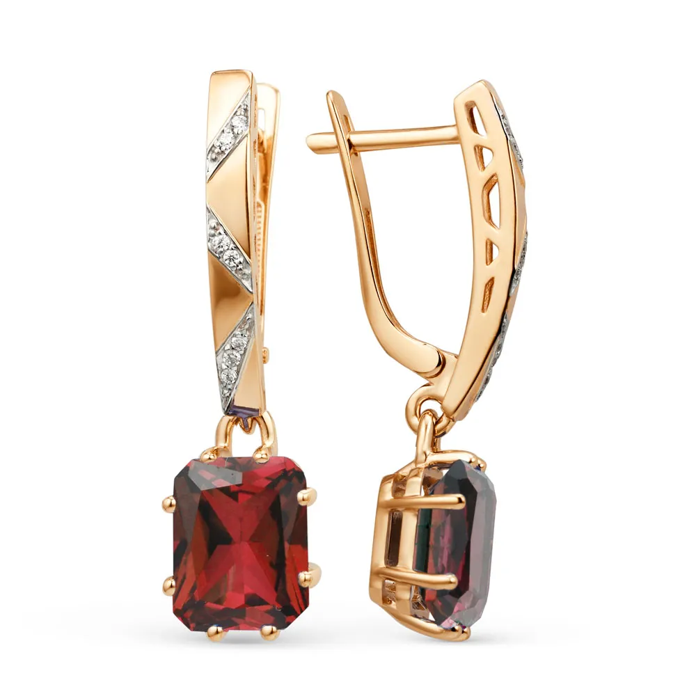 Серьги из красного золота с фианитами