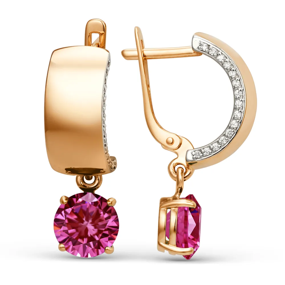 Серьги из красного золота с фианитами
