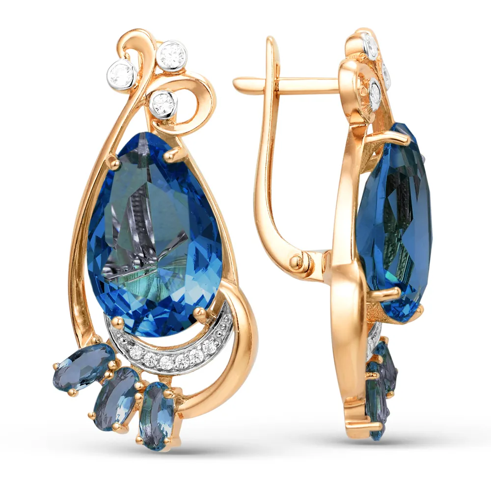 Серьги из красного золота с лондон топазами
