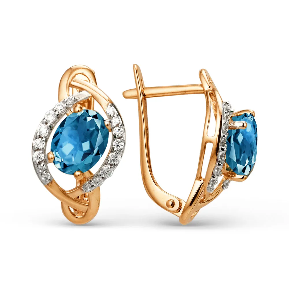 Серьги из красного золота с лондон топазами