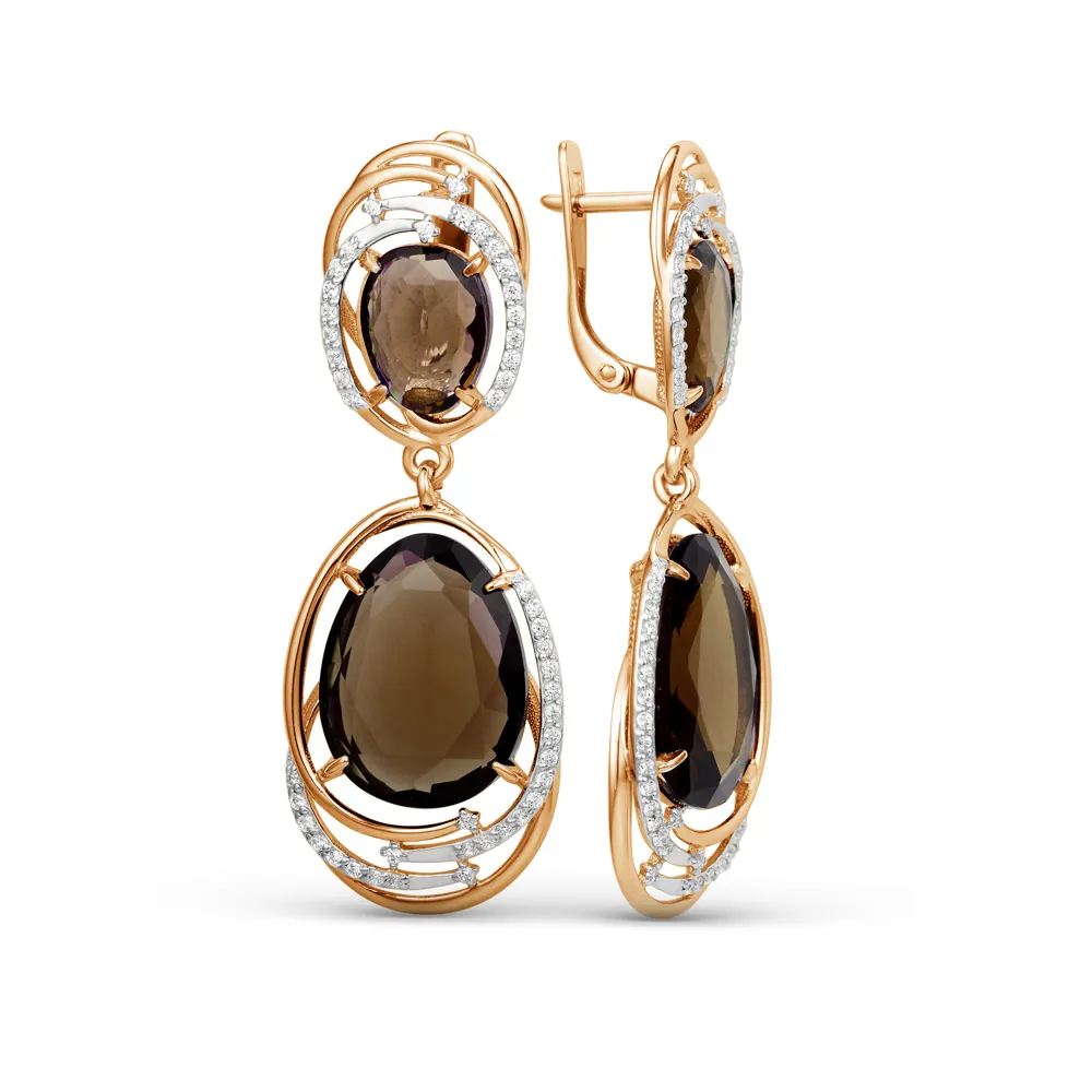 609633:337 Серьги из красного золота с раухтопазами Коллекция - Основная 0