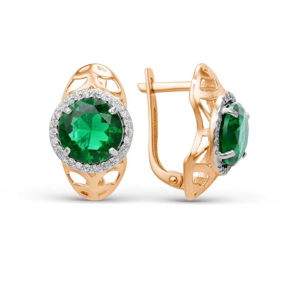 Серьги из красного золота с ювелирными кристаллами