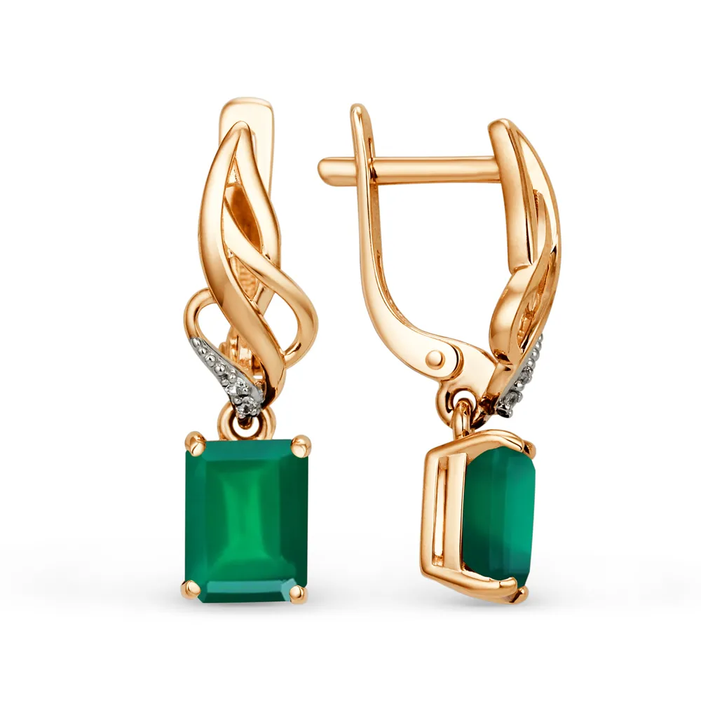 619358:337 Серьги из красного золота с зелеными агатами Коллекция - Основная 0