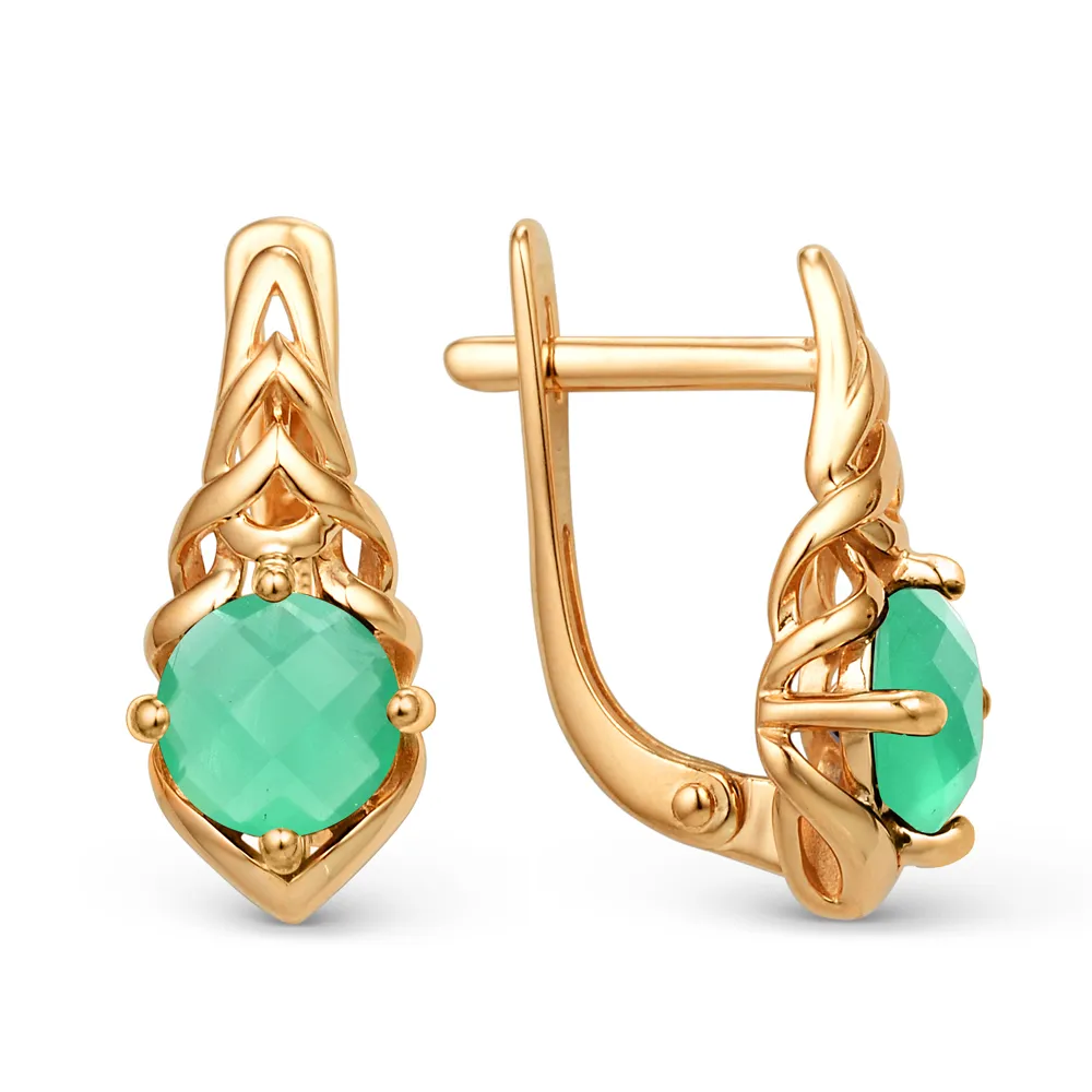 624084:337 Серьги из красного золота с зелеными агатами Коллекция - Основная 0