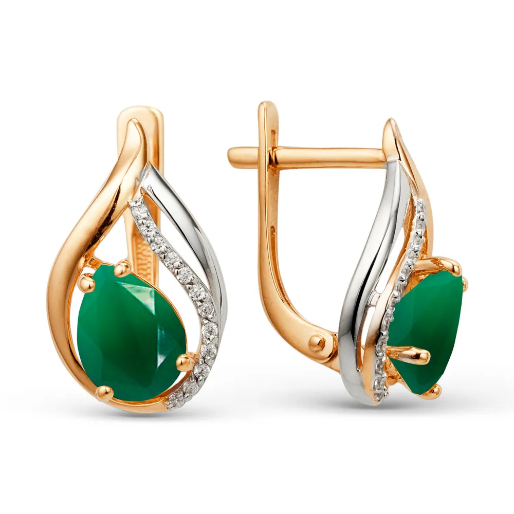 625074:337 Серьги из красного золота с зелеными агатами Коллекция - Основная 0