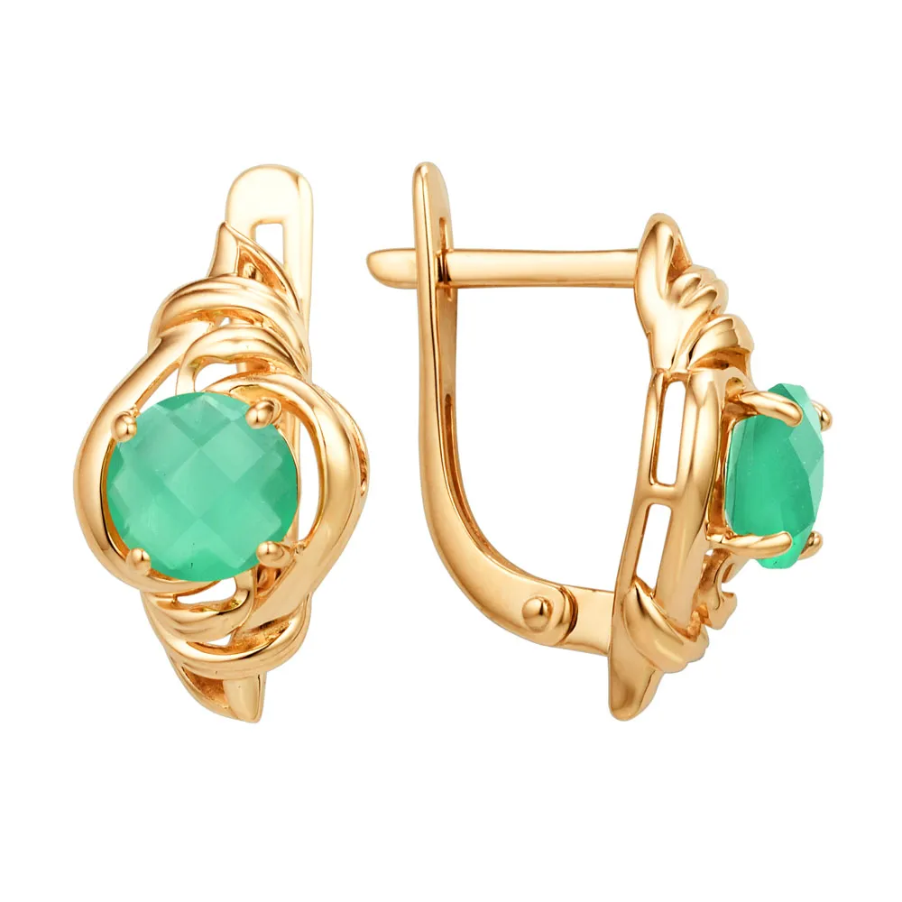 625878:337 Серьги из красного золота с зелеными агатами Коллекция - Основная 0