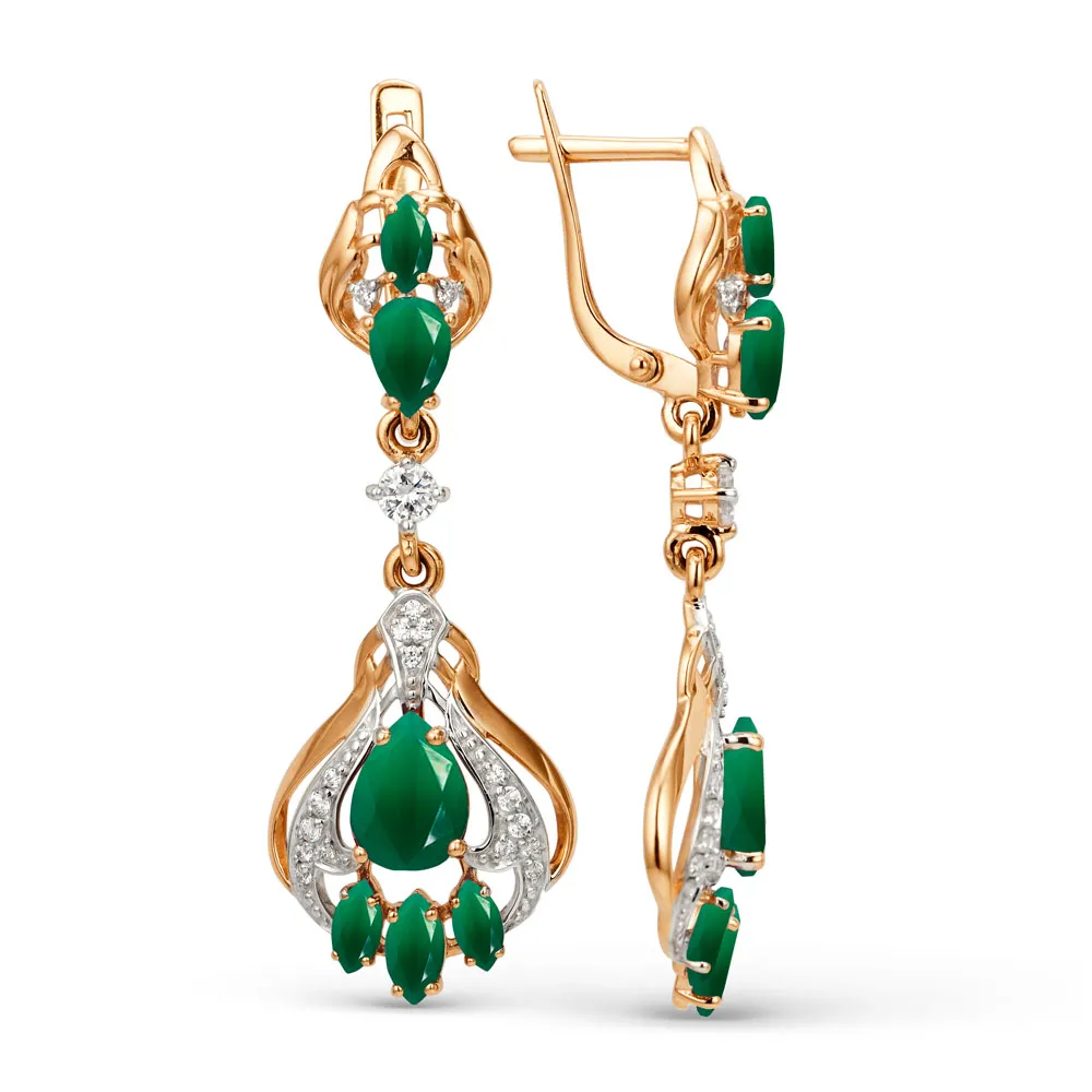 628138:337 Серьги из красного золота с зелеными агатами Коллекция - Основная 0