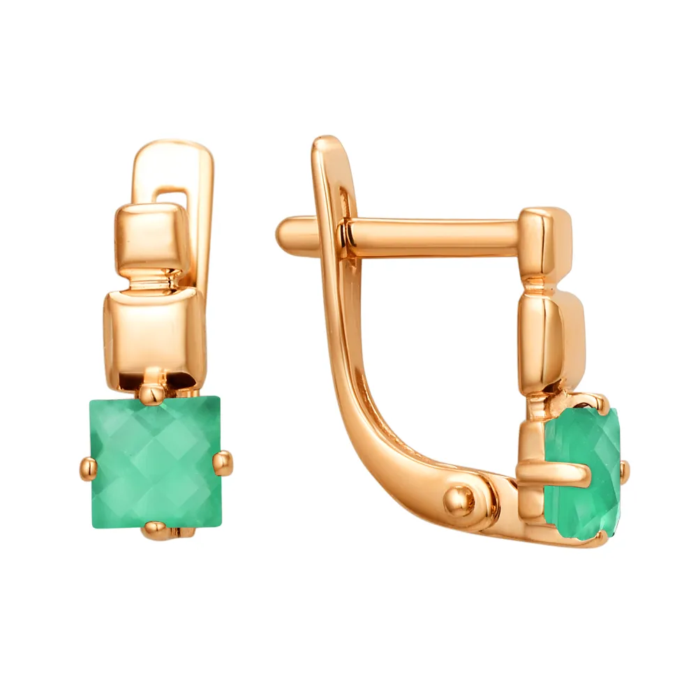 628852:337 Серьги из красного золота с зелеными агатами Коллекция - Основная 0