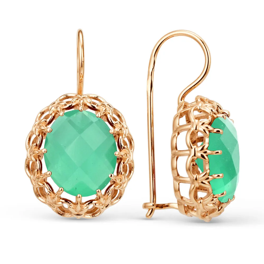 629080:337 Серьги из красного золота с зелеными агатами Коллекция - Основная 0