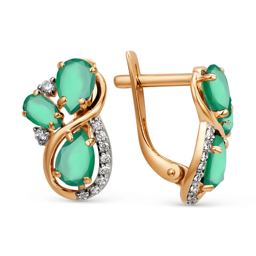 631040:337 Серьги из красного золота с зелеными агатами Коллекция - Основная 0