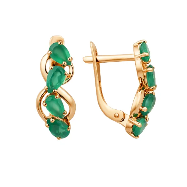 Серьги из красного золота с зелеными агатами