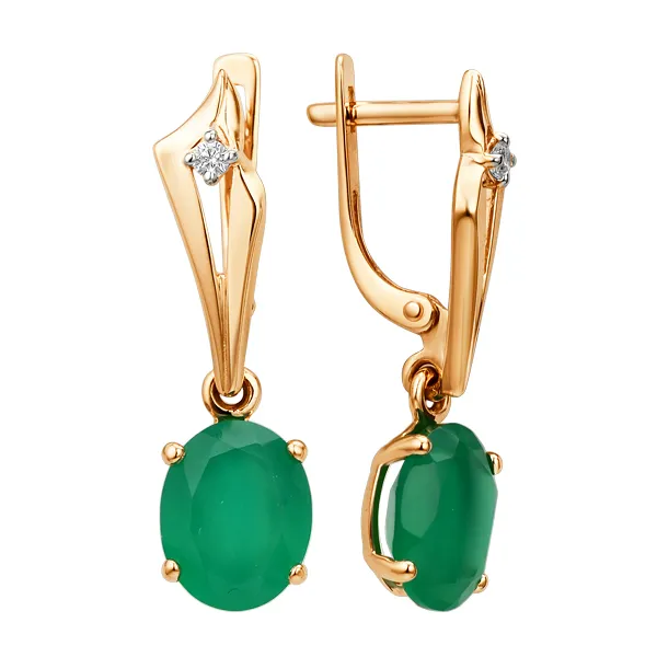 638015:337 Серьги из красного золота с зелеными агатами Коллекция - Основная 0