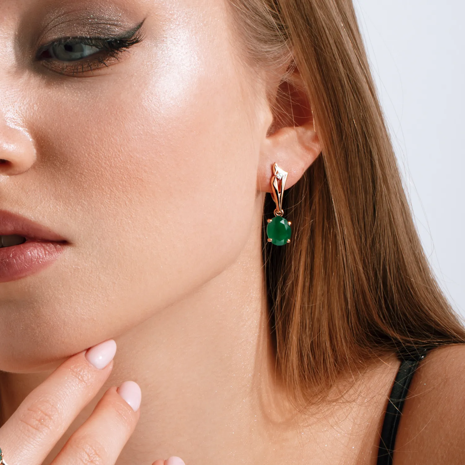 Серьги из красного золота с зелеными агатами