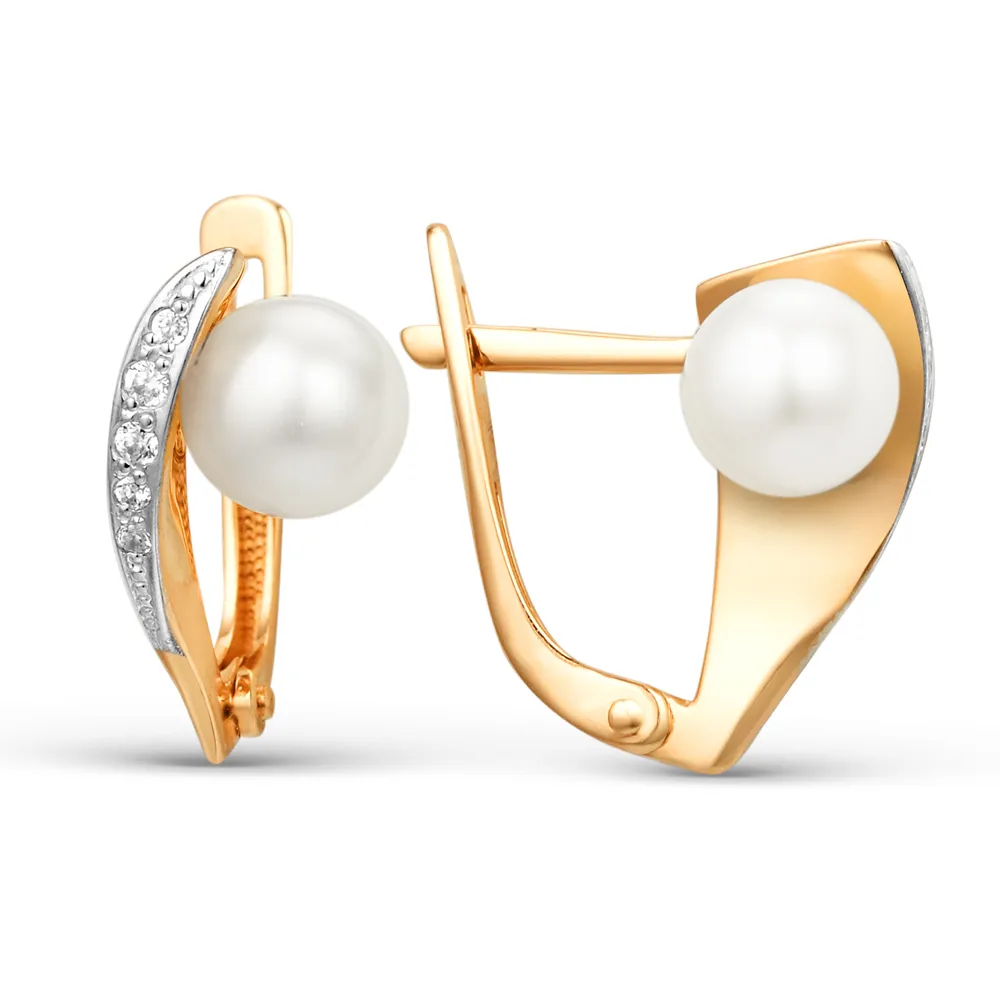 Серьги из красного золота с жемчугом и фианитами
