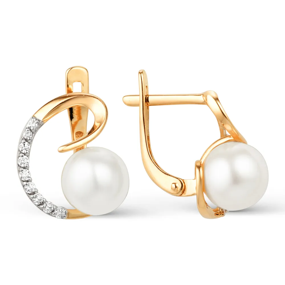 Серьги из красного золота с жемчугом и фианитами