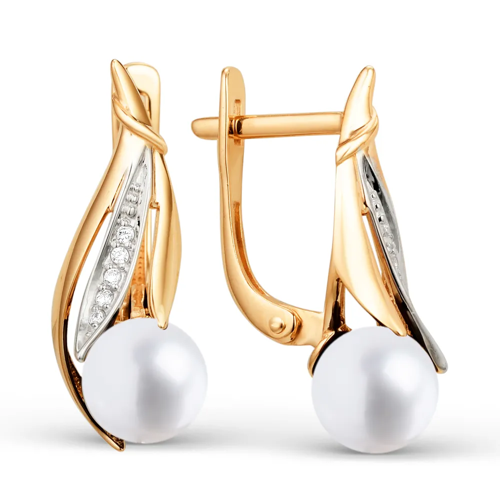 Серьги из красного золота с жемчугом и фианитами